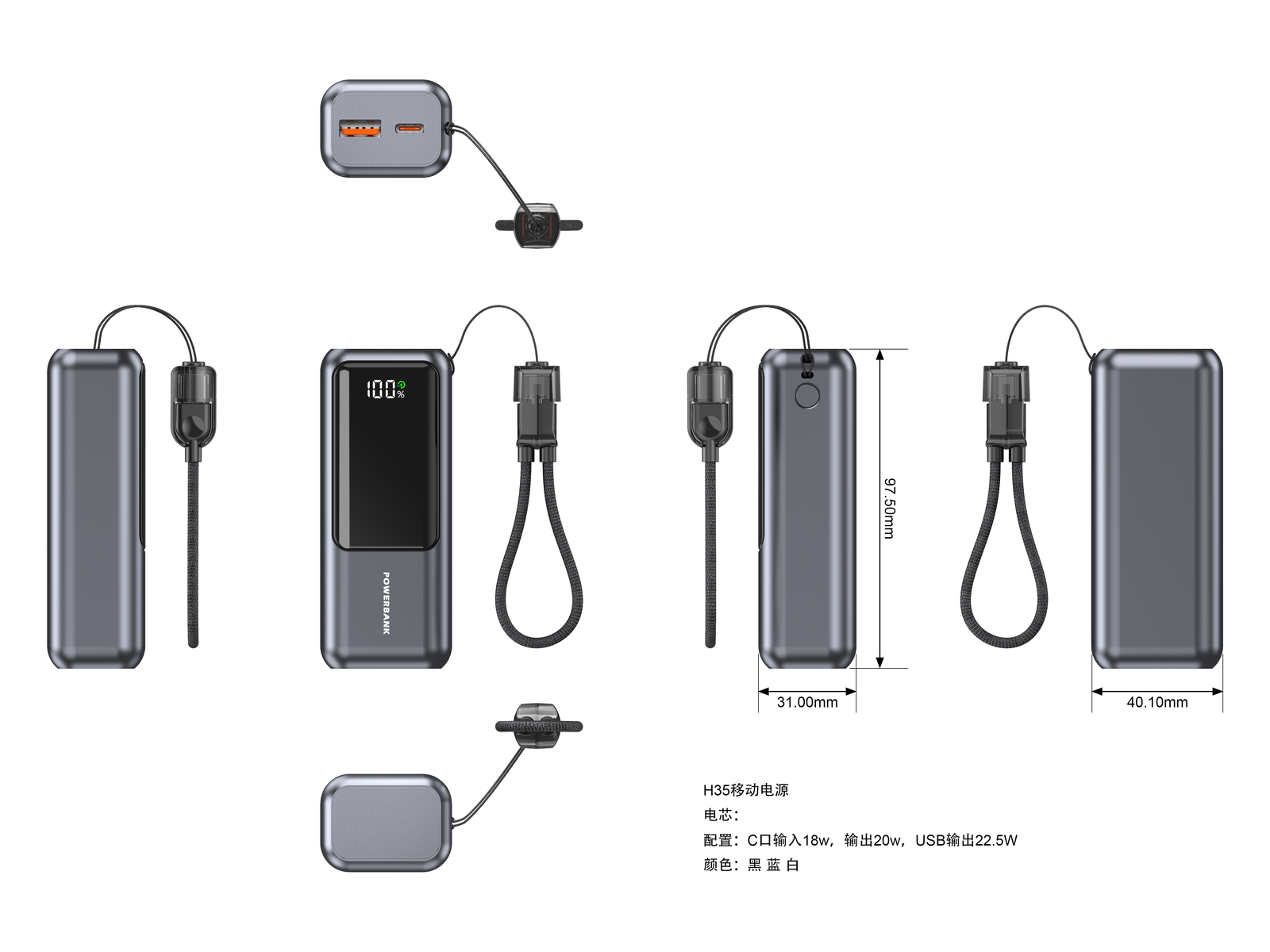 Hiyportwa 10000mAh/20000mAh power bank with cable (22.5W)